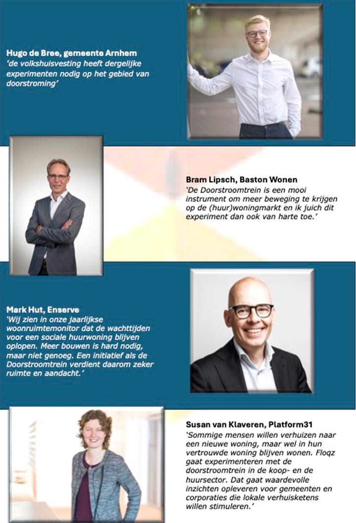 Met steun van de provincie Utrecht is in 2024 gestart met het uitproberen van de Doorstroomtrein. De provincie heeft hiervoor subsidie verstrekt aan Floqz. In de eerste fase worden vier wijken/stadsdelen geselecteerd. Belangrijk bij deze selectie is dat er een mogelijkheid is om de Doorstroomtrein mee op te starten. Dat kan via een nieuwbouwproject gebeuren, maar ook via een particuliere woningeigenaar.